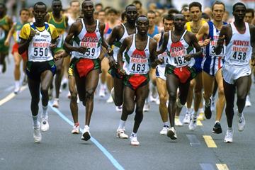 | Moses Tanui(462) in the 1995 IAAF Half Marathon World Championships. Photo courtesy of IAAF |